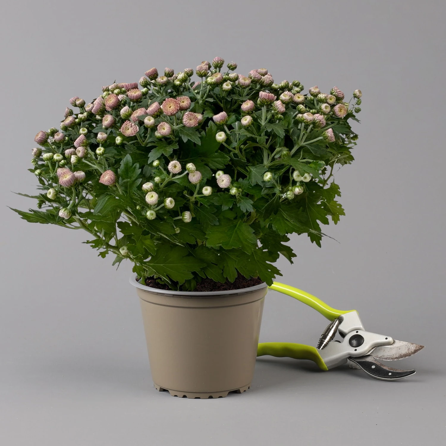 Die kleinen runden, gefüllten Korbblüten, blühen von Juli bis Oktober in Rosa. Sie setzt damit schöne Akzente in Ihrem Zuhause. Dem Namen multiflora (=mehrblütig) machen die Chrysanthemen alle Ehre, da sie mit einer großen Zahl an kleinen Blüten überzeugen.