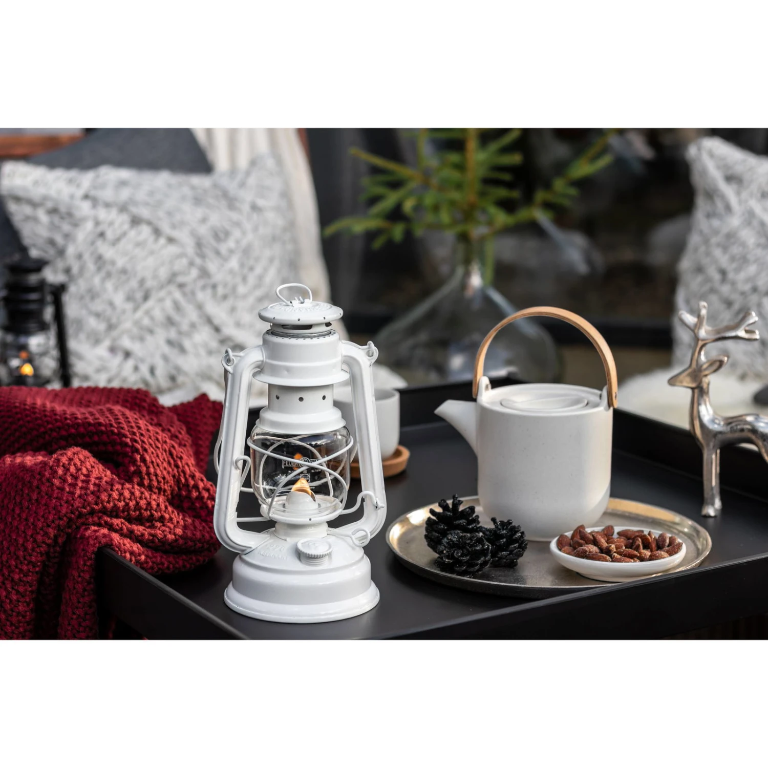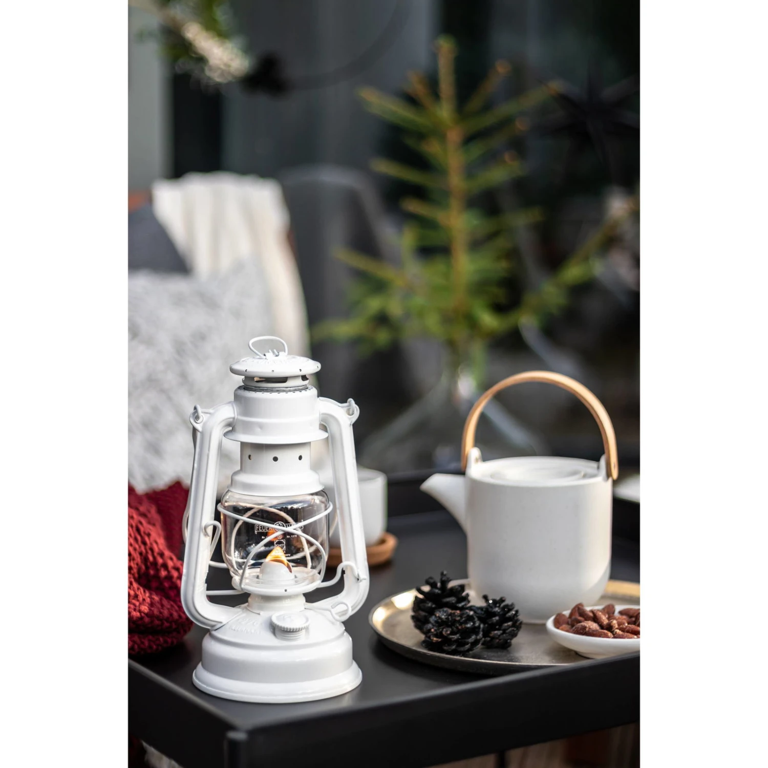 Mit der Sturmlaterne ‚Baby Special 276‘ ist für Beleuchtung im Außenbereich bestens gesorgt. Die Sturmlaterne von Feuerhand in leuchtendem reinweiß überzeugt mit einem ruhigen Flammenbild und einer langen Brenndauer. Diese stromlose Lichtquelle brennt trotz stürmischem Wind und heftigen Niederschlägen einfach weiter.