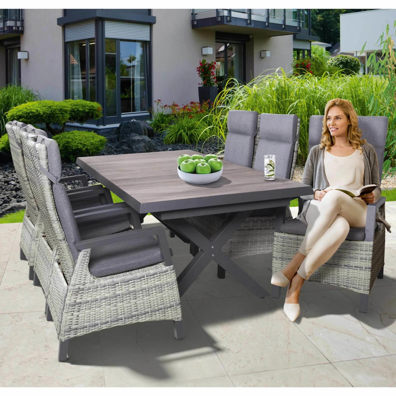 Geflechtsessel Bremen, Hellgrau/braun, Verstellbare Rückenlehne