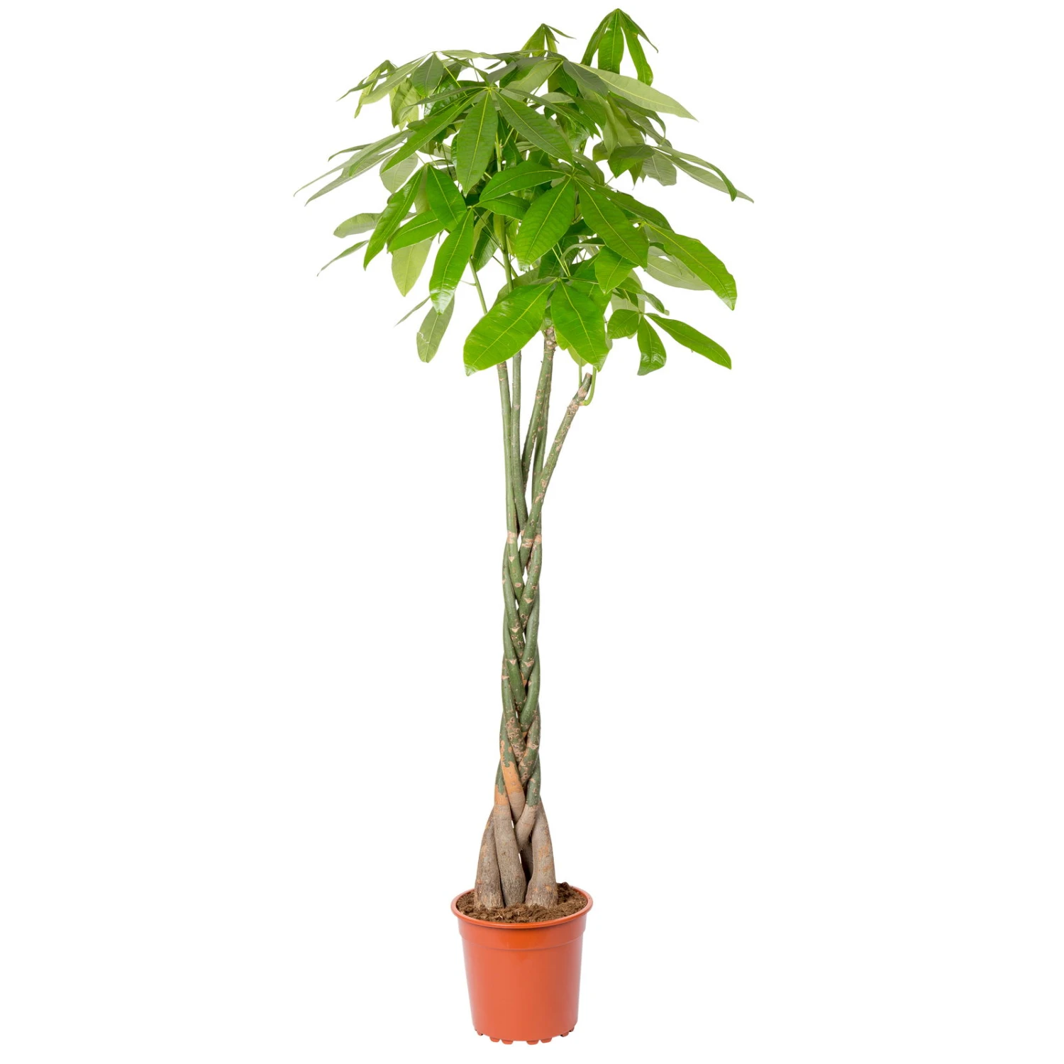 Mit dieser Glückskastanie (Pachira aquatica) erhalten Sie eine herrlich pflegeleichte Zimmerpflanze! Die Pachira verschönert mit ihren großen ovalen Blättern nicht nur Ihr Zuhause, sondern trägt auch zu einem angenehmen Raumklima bei, indem sie die Luftfeuchtigkeit erhöht. Dank ihres geflochtenen Stamms wird die hohe Glückskastanie zum schönen Blickfang in Wohn-, Ess- oder Schlafzimmern. Auch Geschäftsräume weiß die mittelamerikanische Pflanze zu schmücken.
