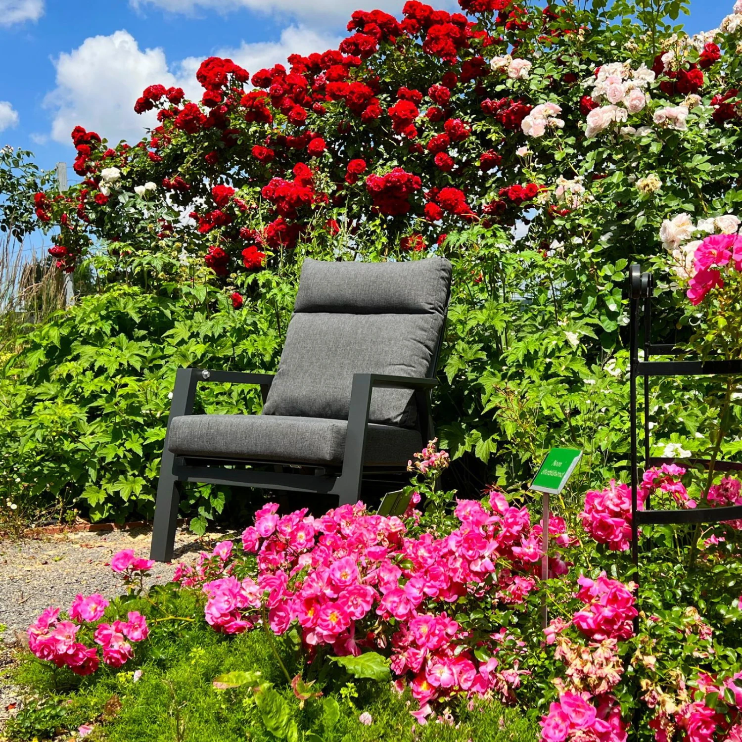 Wenn es darum geht, sich im Außenbereich komfortabel einzurichten und die wertvolle Zeit outdoor in vollen Zügen zu genießen, dann ist der Sessel ‚Jumbo Australien‘ genau die richtige Lösung. Bei diesem Sessel profitieren Sie nicht nur von einem weich gepolsterten Sitz, sondern nicht zuletzt von einer mehrfach verstellbaren Rückenlehne. Dank einer Gasdruckfeder können Sie die Position der Rückenlehne stufenlos an Ihren Bedarf und Ihre aktuelle Stimmung anpassen. Lehnen Sie sich zurück und lassen Sie Ihre Gedanken in die Ferne schweifen oder verlegen Sie kurzerhand Ihr Homeoffice nach draußen. Die Alu-Textil-Möbel sind pflegeleicht und witterungsbeständig. Jedoch empfehlen wir, den Sessel ‚Jumbo Australien‘ frostfrei und regengeschützt zu lagern.