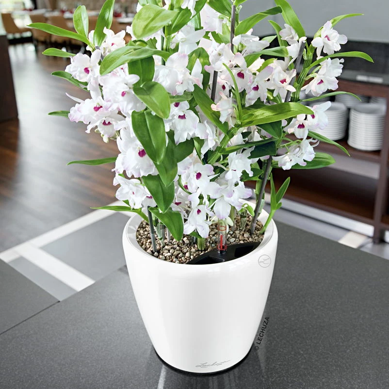 Mit dem Lechuza Classico Premium LS in hochglänzendem Weiß haben Sie die Möglichkeit, Ihre Bepflanzung spielend einfach zu wechseln – das patentierte Linersystem macht es möglich. Auch zum Einkürzen der Wurzelspitzen oder zur gründlichen Reinigung der Pflanze unter fließendem Wasser wird der funktionale Pflanzeinsatz mittels des versenkbaren, patentierten Griffrahmens einfach aus dem Pflanzgefäß gehoben. Dank dieses Pflanzeinsatzes geht auch das Auswechseln der Bepflanzung oder der Transport, selbst von großen Pflanzen, spielend leicht von der Hand.