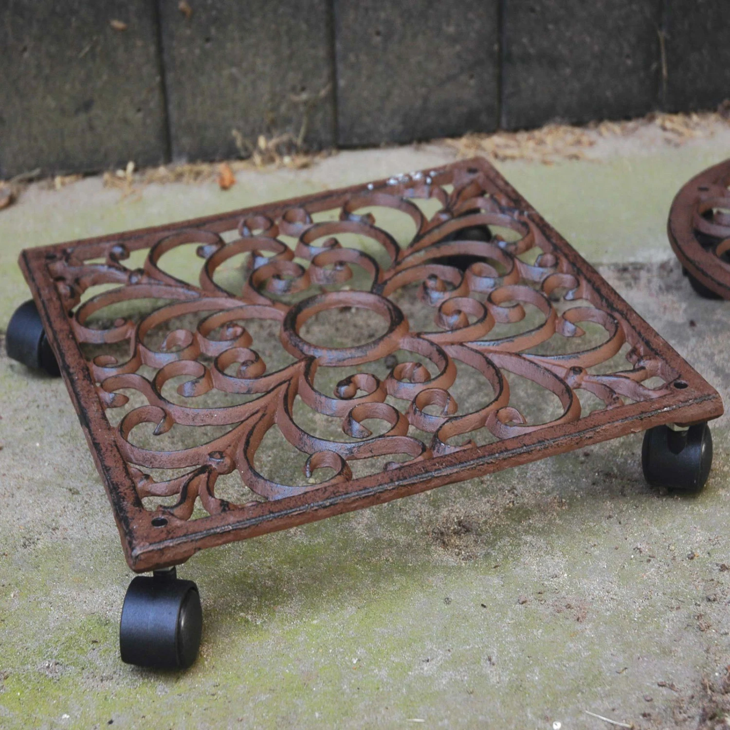 Verleihen Sie Ihren Zimmer-, Terrassen- oder Balkonpflanzen ein Plus an Mobilität! Dank dieses bis zu 30 Kilogramm belastbaren Pflanzuntersetzers ist das kein Problem. Der Trolley ist aus rostbraunem Gusseisen gefertigt und mit leichtläufigen Rollen ausgestattet. Mit dem rollbaren Untersetzen fällt Ihnen die Raumbegrünung noch einfacher.