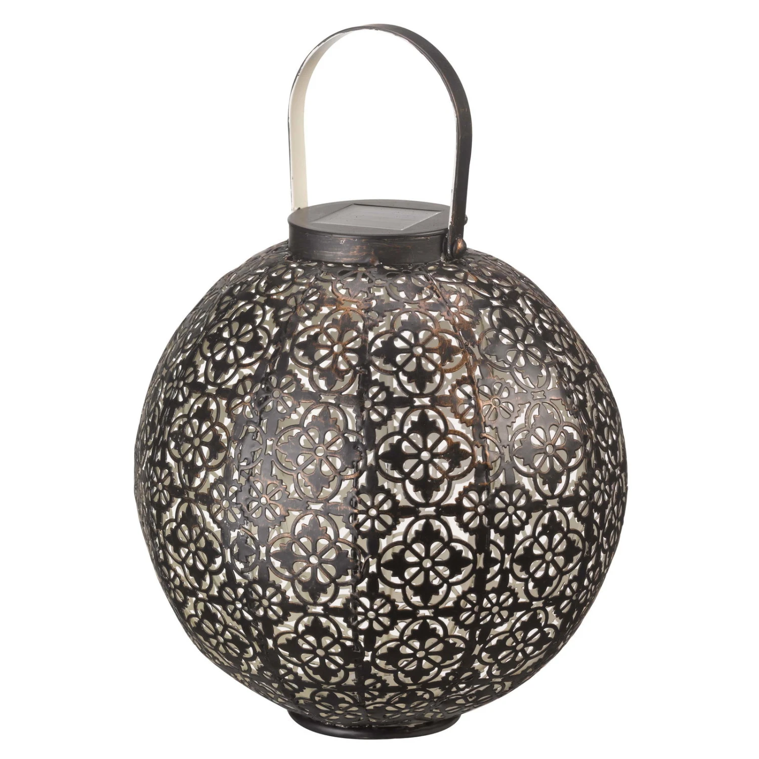 Die außergewöhnliche und besonders hübsche Solarleuchte „Damast“ aus Metall begeistert im nordafrikanischen Design und trendiger Farbe. Die Solarlaterne in Form einer Kugel ist für den Outdoorbereich bestens geeignet und dafür konzipiert. Am Tag überzeugt die Solar Laterne als charmante Deko, bei Dunkelheit zeigt sie eine spektakuläre Beleuchtung in Ihrem Garten, auf der Terrasse, dem Balkon oder auf dem Weg Ihres Hauses. Mit der schönen Solar Laterne zaubern Sie Stück für Stück eine Wohlfühloase aus Ihrem Garten. Die solarbetriebene Leuchte besitzt ein weißes, angenehmes Licht und bringt Helligkeit nach Draußen. Das Muster in der Metallwand der Lampe wird durch das Licht reflektiert und zeichnet wunderschöne Ornamente auf den Boden und die Wand.