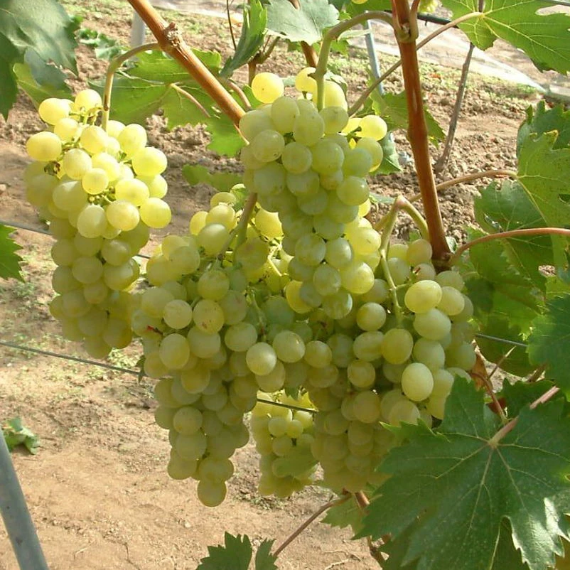 Die Tafeltraube ‚Fanny®‘ besitzt auffallend große, runde, gelb-grüne Beeren, die besonders wohlschmeckend und knackig sind. ‚Fanny®‘ ist eine ungarische Züchtung. Sie kommt auch hervorragend mit einem Platz an etwas kühleren Lagen zurecht.